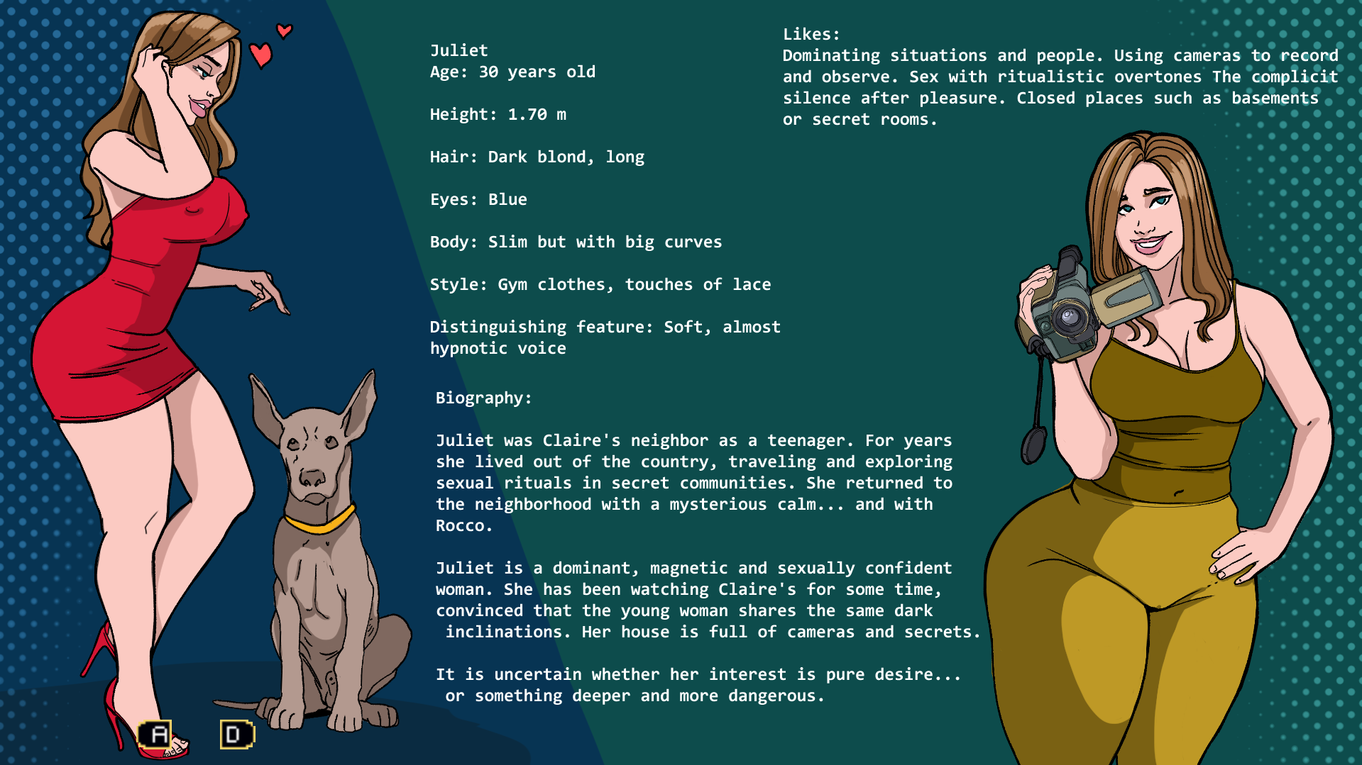 You play as Claire, a young woman hired to take care of her neighbor Juliet’s dog. What begins as a simple domestic job soon reveals forbidden basements, doors that should never be opened, and impulses that should never be awakened. The bond with Juliet — and the beast lurking in the shadows — turns everyday life into a labyrinth of secrets, intimate tension, and choices that shape your fate.