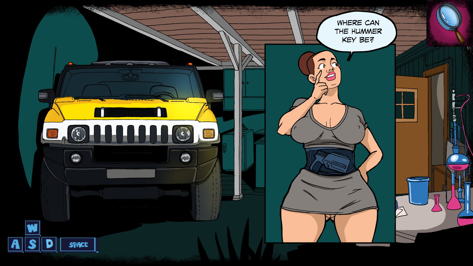 Use W A S D to walk around the house and explore every nook and cranny.